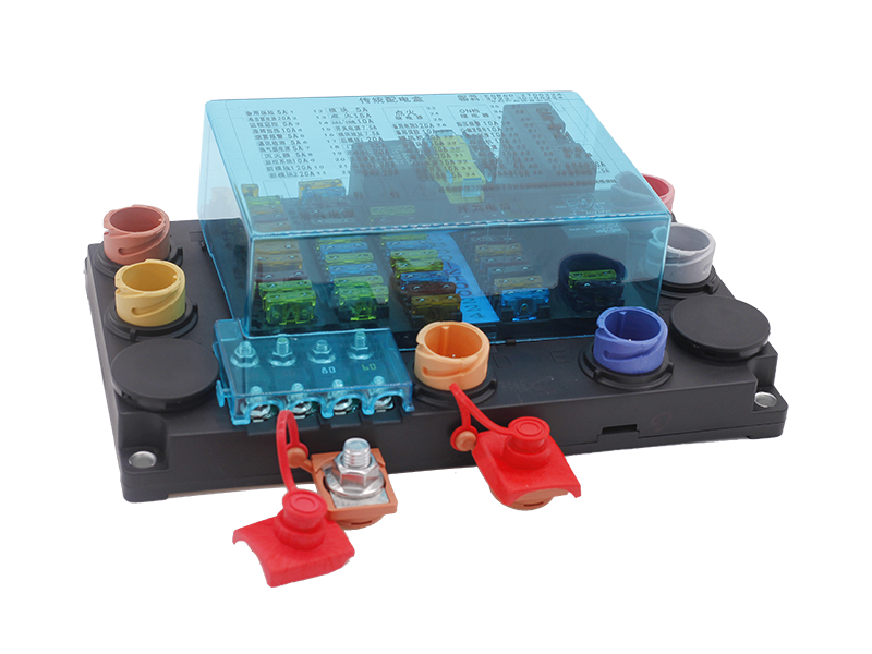 ■ 下部電源輸入端絕緣防護,采用我公司絕緣技術(shù);分3路輸入,常電、ACC檔、ON檔    每一路都采用銅排輸入,與國內(nèi)其他公司傳統(tǒng)的內(nèi)部保險端螺柱鏈接相比,具有連接方便;安全性/可靠性更高的優(yōu)點。